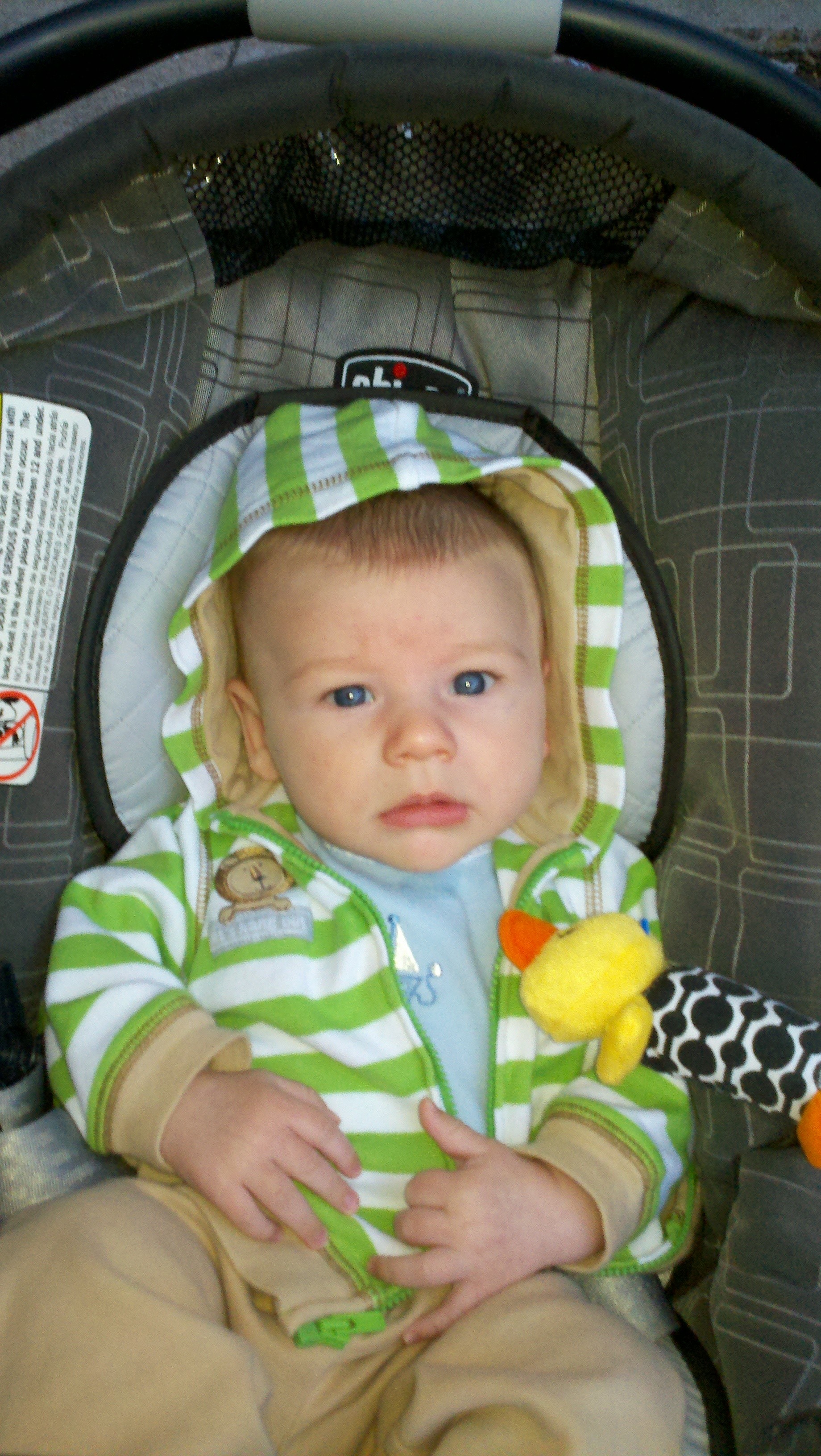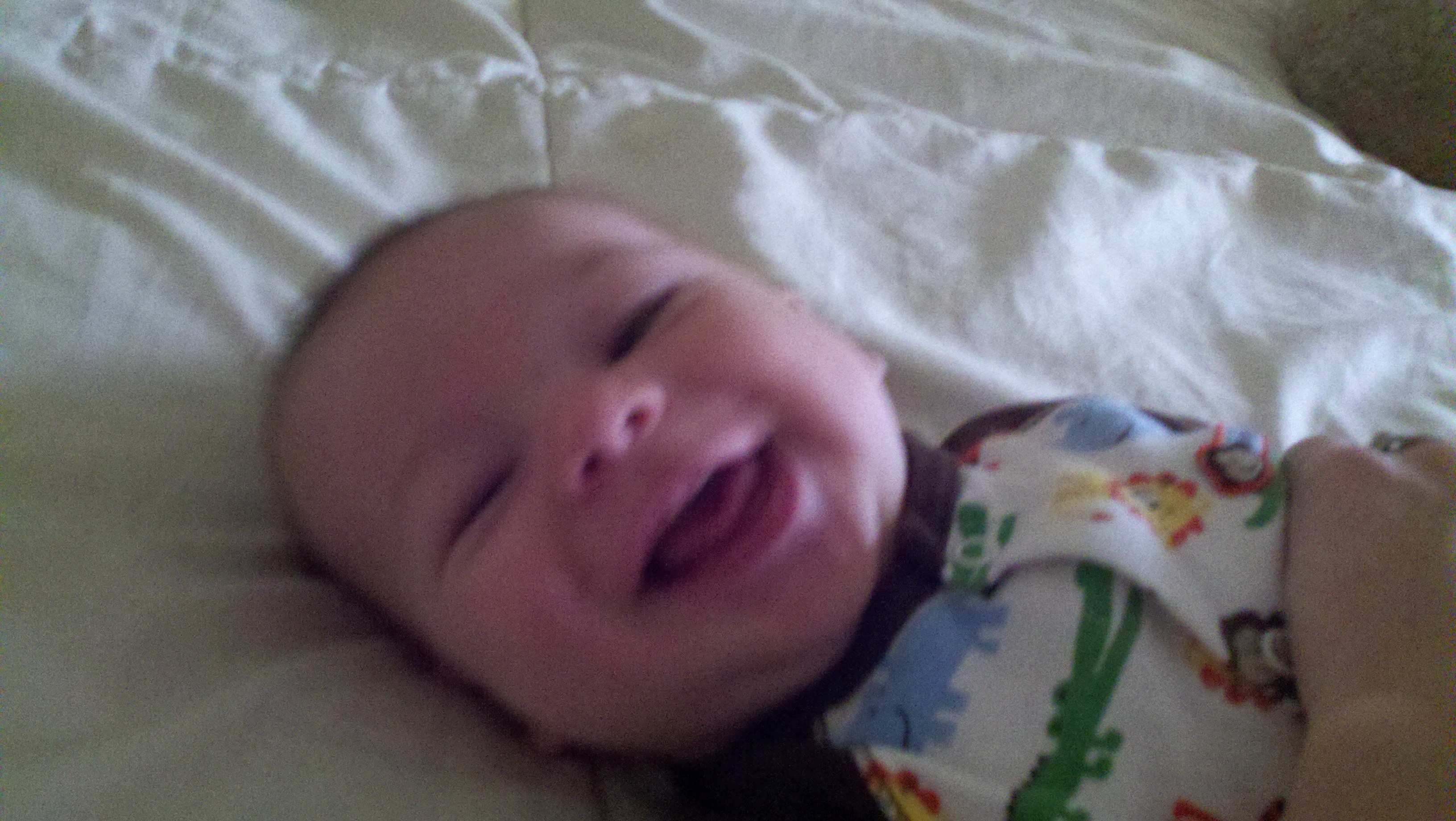 Blurry, but happy, baby. Hes laughing too – we have a few videos of it that Ill get Phil to post soon. The last few weeks have been pretty uneventful. I go to a baby play group once a week now and we are still taking lots of walks. We STILL dont have the Jetta back, so I stay pretty close to home most days and then we run errands at night or on weekends. Im very excited to get a car back, then I can run errands during the day and spend more quality time at home. Hopefully we’ll get it next week. Its been 68 days since we were a two car family. Sheesh.