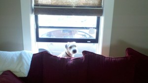 Barney enjoys it too. He also watches the car go by from the couch inside, but the other day he fell behind the couch into the window well and couldnt get out. I thought it was pretty hilarious.