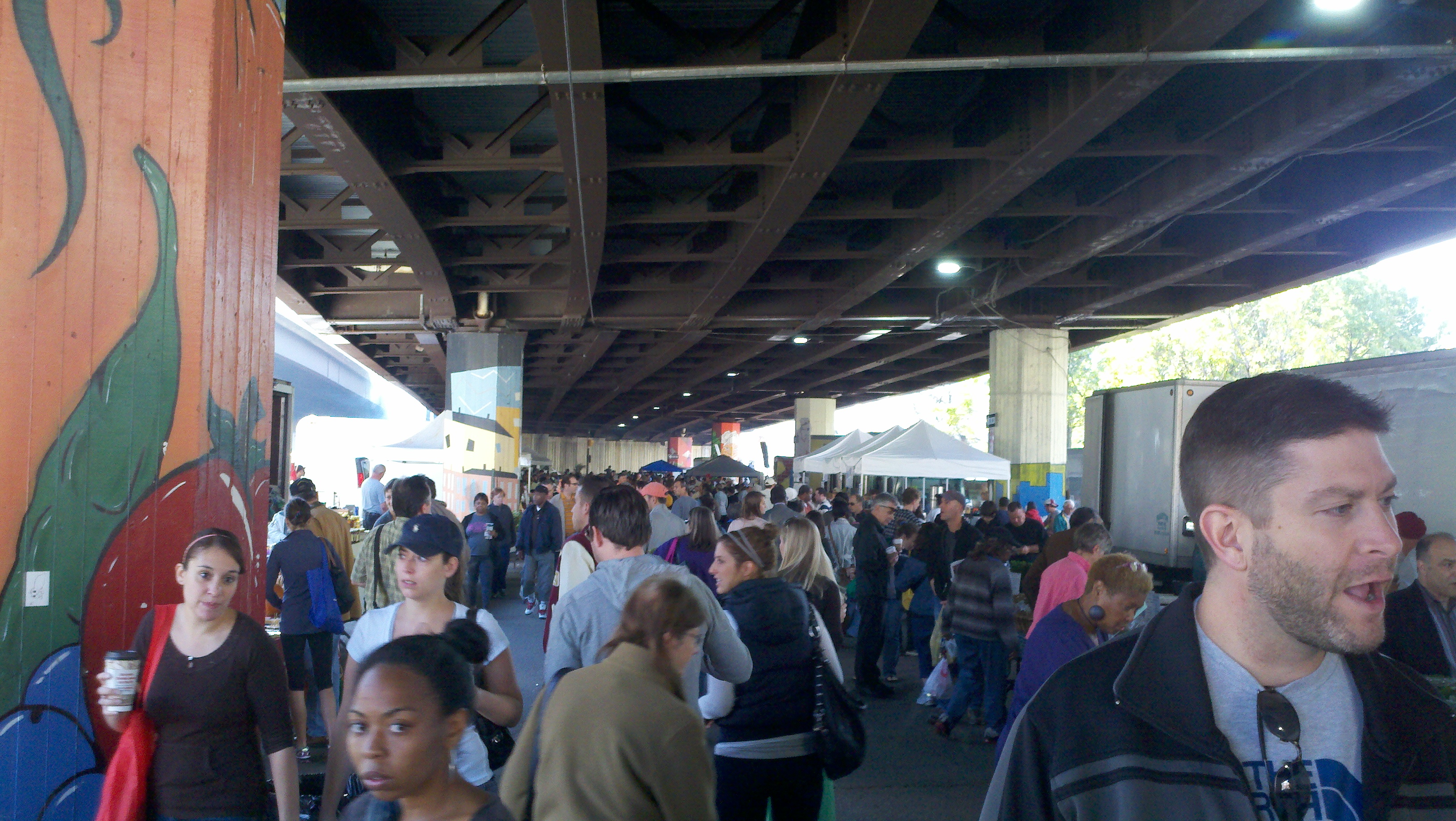 We go to the farmers market on sunday mornings. Its under the overpass in downtown baltimore.