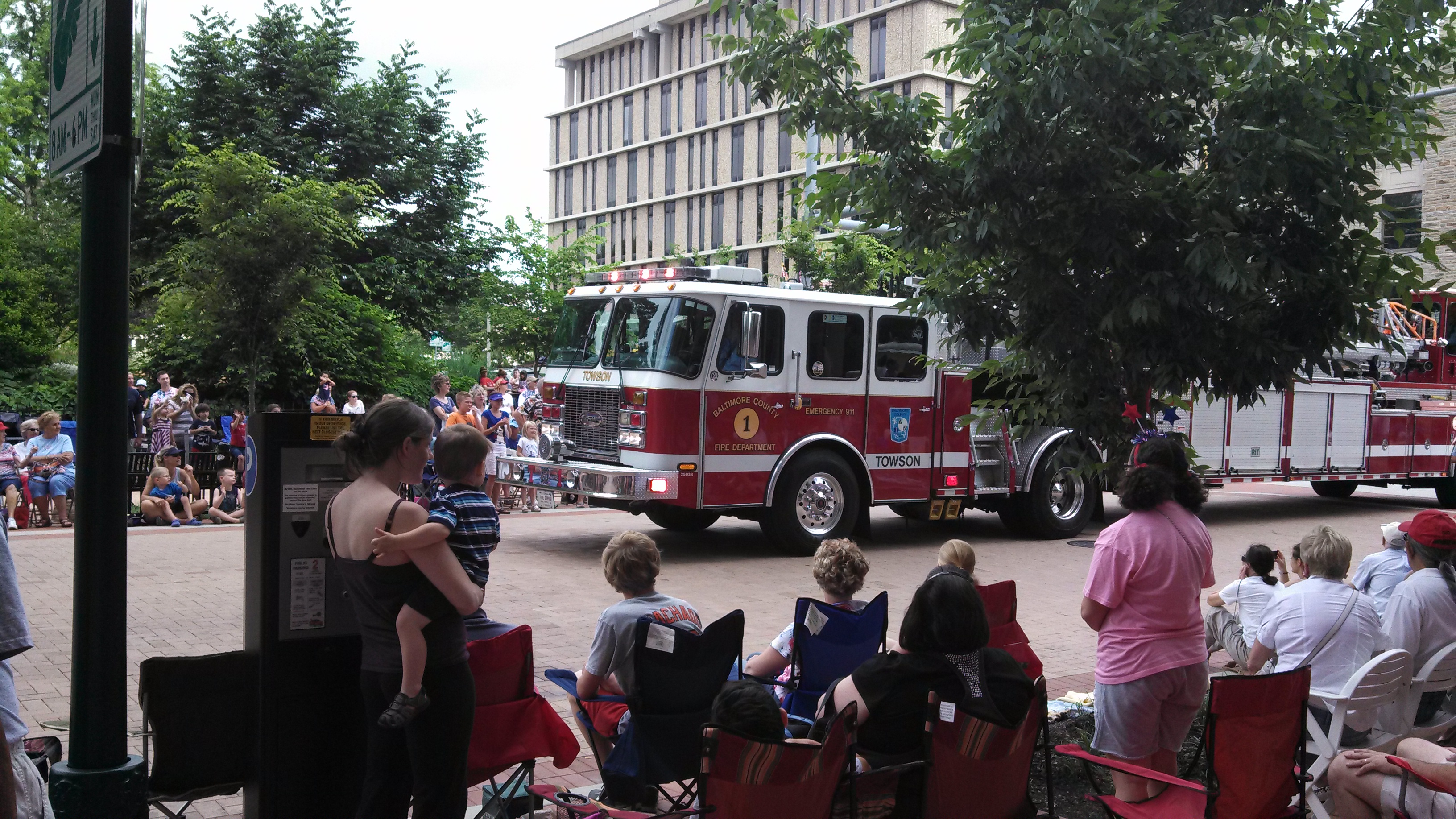Now that Wil is finally starting to ‘get’ certain events – I really wanted to make a big deal about my favorite holiday: the 4th of july! I was so excited for the holiday and looked up parades and fireworks and all these fun things to do….then I came down with an infection the night before. Ugh! I was so sick. But Phil was amazing and took care of the kids so I could get as much rest as possible and still have a good day. We carried on and went to the Towson, MD parade: