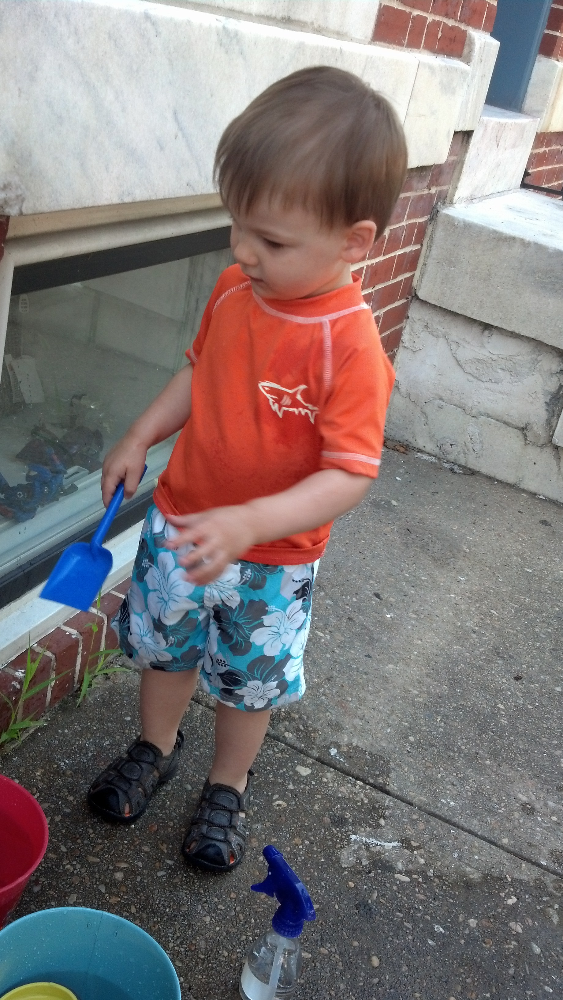 That afternoon, we played in the spicket. Wil loves bath-time, but had a horrible time at the pool the last time we went. We thought playing outside in the water might be a good middle ground and we’ll work our way back up to the pool again. The neighborhood kids flocked to the water buckets and squirt guns! Freddy Jr. and siblings came by to play, along with Roshera from across the street. Its always fun talking to the neighborhood kids! Evie hung-out inside through the whole thing.