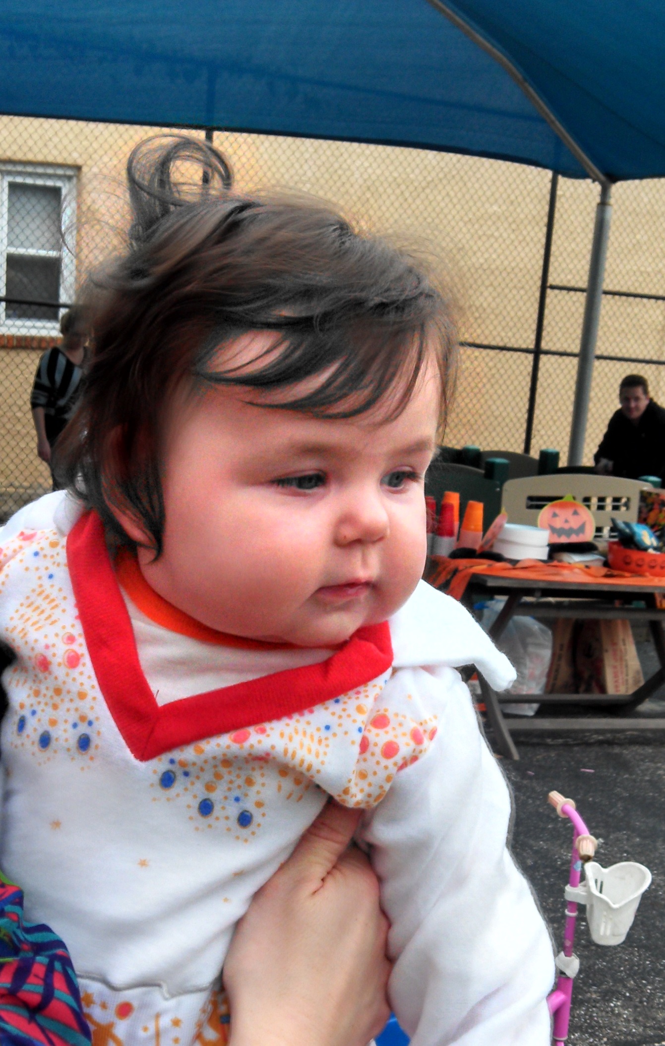 Then around 4pm – phil got home from work early and we headed to a neighborhood kids halloween party! We were able to get Wil in his costume for a bit – but I must admit, Evie made a waaaay better Elvis.