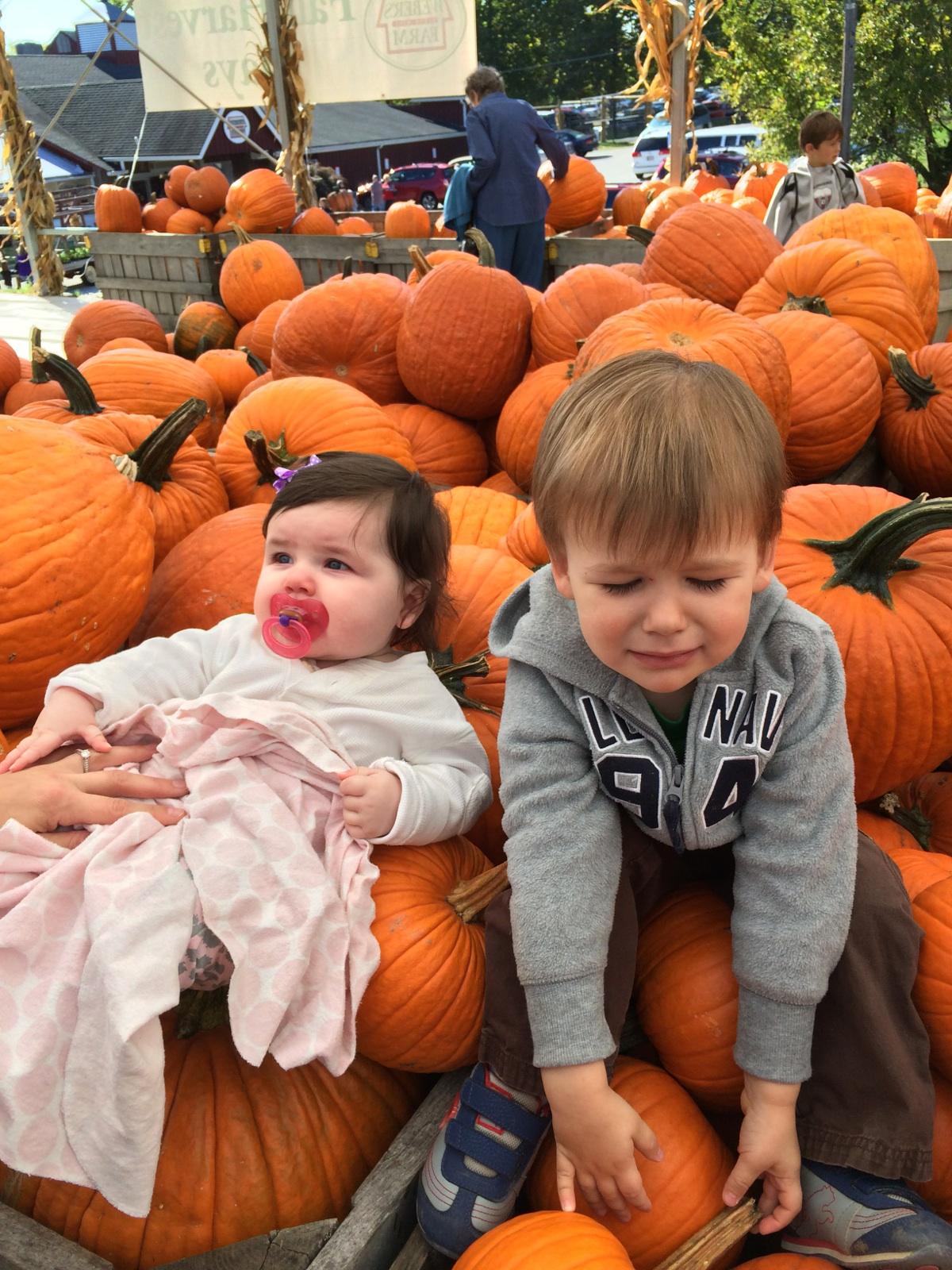 Halloween was another tough one this year. From our experience last year, we knew Wil wasnt a huge fan of pumpkins or halloween costumes. However, we have finally started allowing occasional candy – so we thought that might entice him this year. It was only somewhat successful. We tried to do pumpkins the weekend before with Phil and Maggie, but Wilek had no interest. He did like them when they were lit up – and liked pointing them out on walks with daddy – but wasnt interested in carving them or getting gooey.