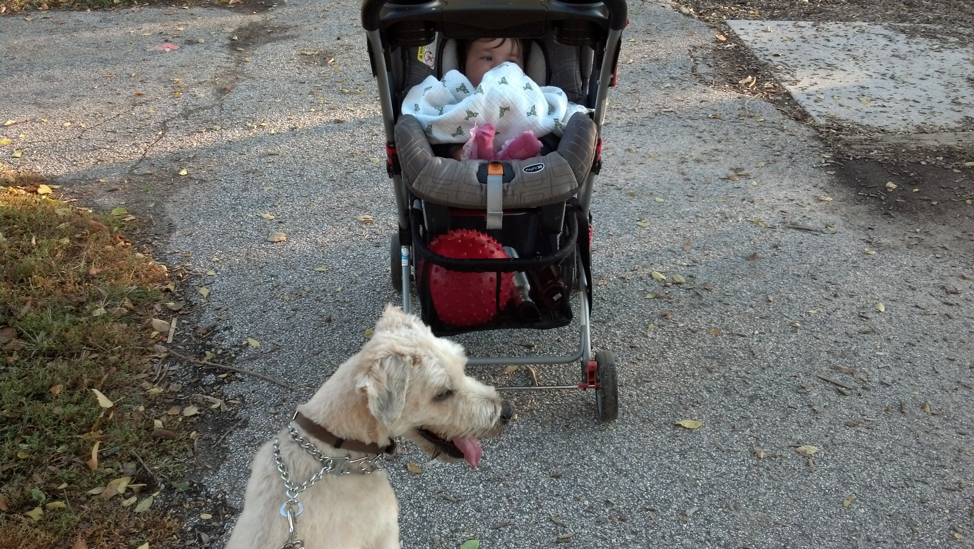 We left the neighborhood party early to try our hand at trick or treating for the first time ever. Wil was NOT interested at first. We tried to get him to go to 2 houses, but he would just break down – wet noodle style. We finally forced him to go up to one of our neighbors who was sitting outside handing out candy. Wil was screaming the entire time – but he gave Wil (me) 2 pieces and I opened one – a twizzler – on the spot and gave it to him so he could reap the reward.