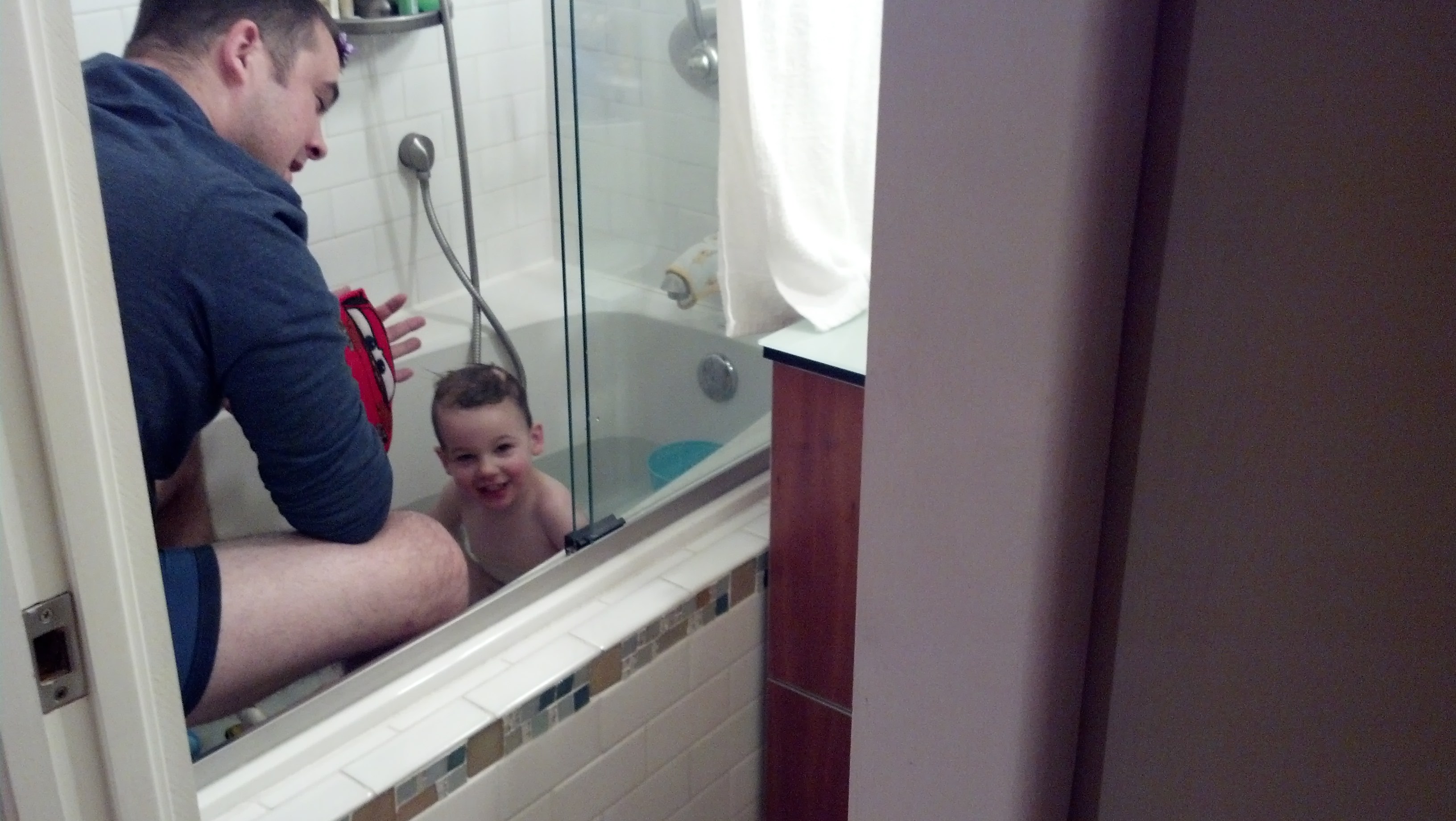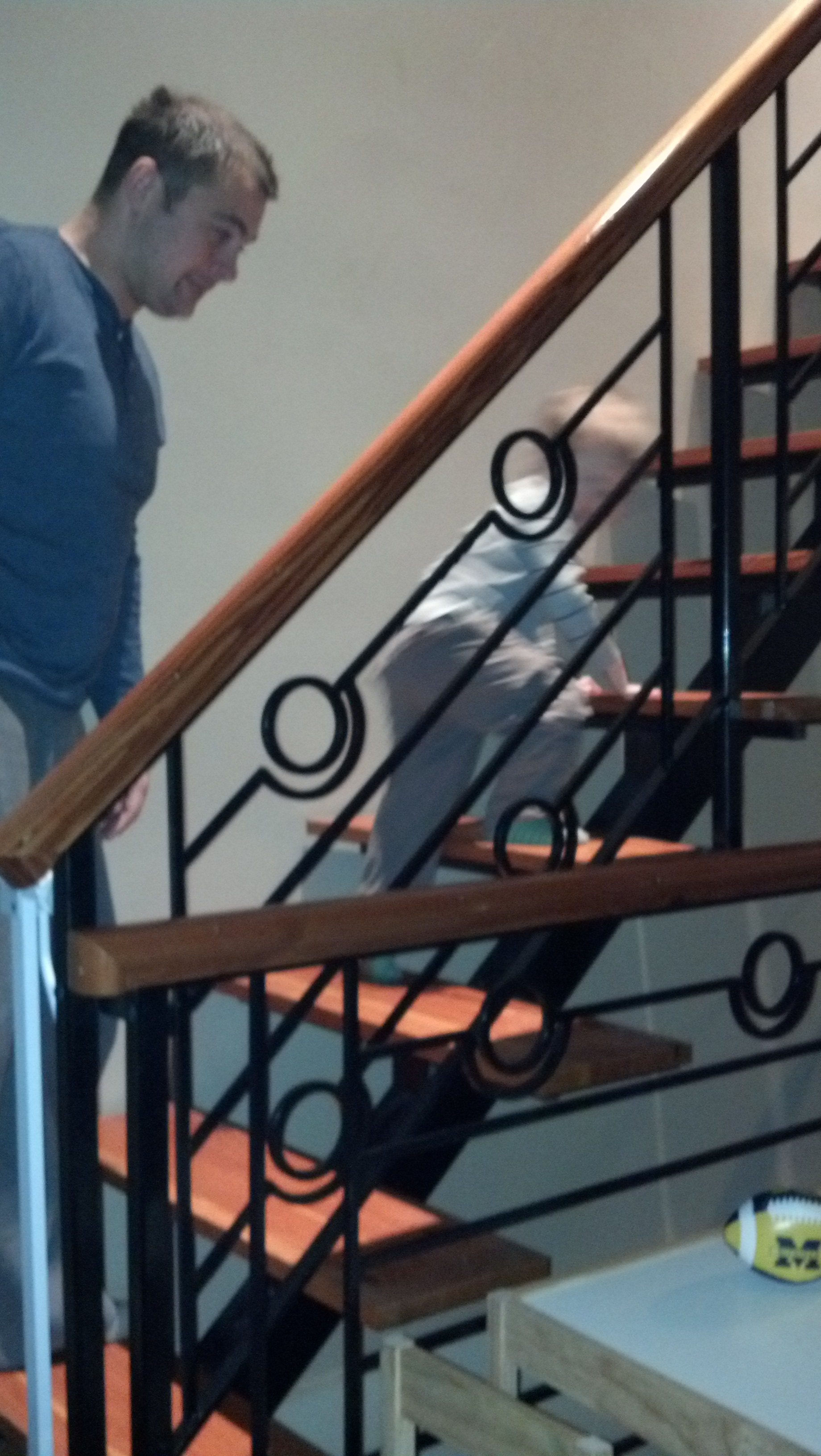 During our christmas break, he got use to sleeping on a floor mattress. So we thought it would be a good time to move him out of the crib at home. His normal nighttime routine would be: Upstairs with Daddy: