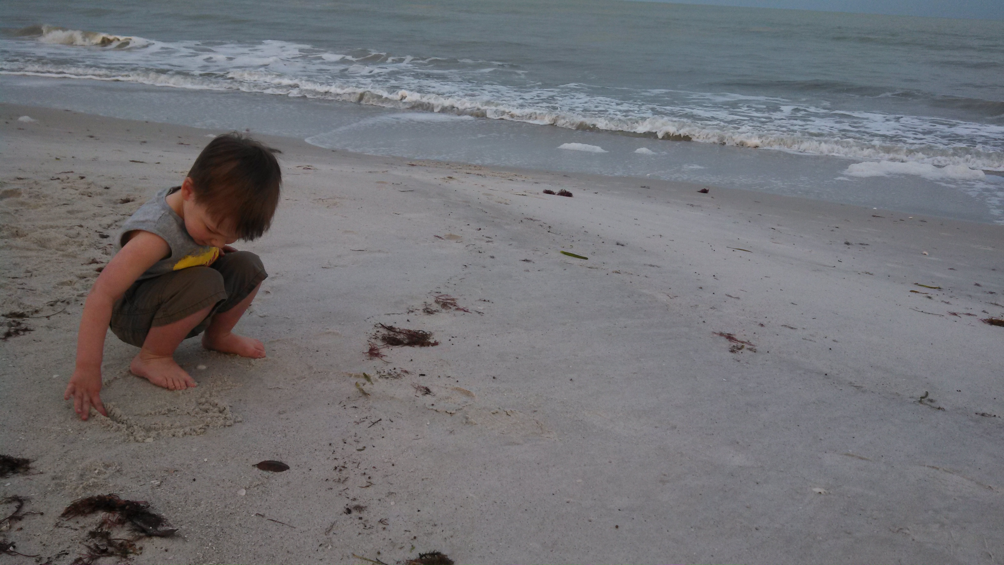 Oh man thats just what we needed. This winter has been long and it was so nice to step foot on the beach. Getting down there was a bit rough – our flight was delayed, we ran out of water on the plane, Wil leaked through his diaper, Evie screamed a good part of the way, but that just seems par for the course these days. At least we had 80 degree weather after it was over. Thursday morning we woke up to this: