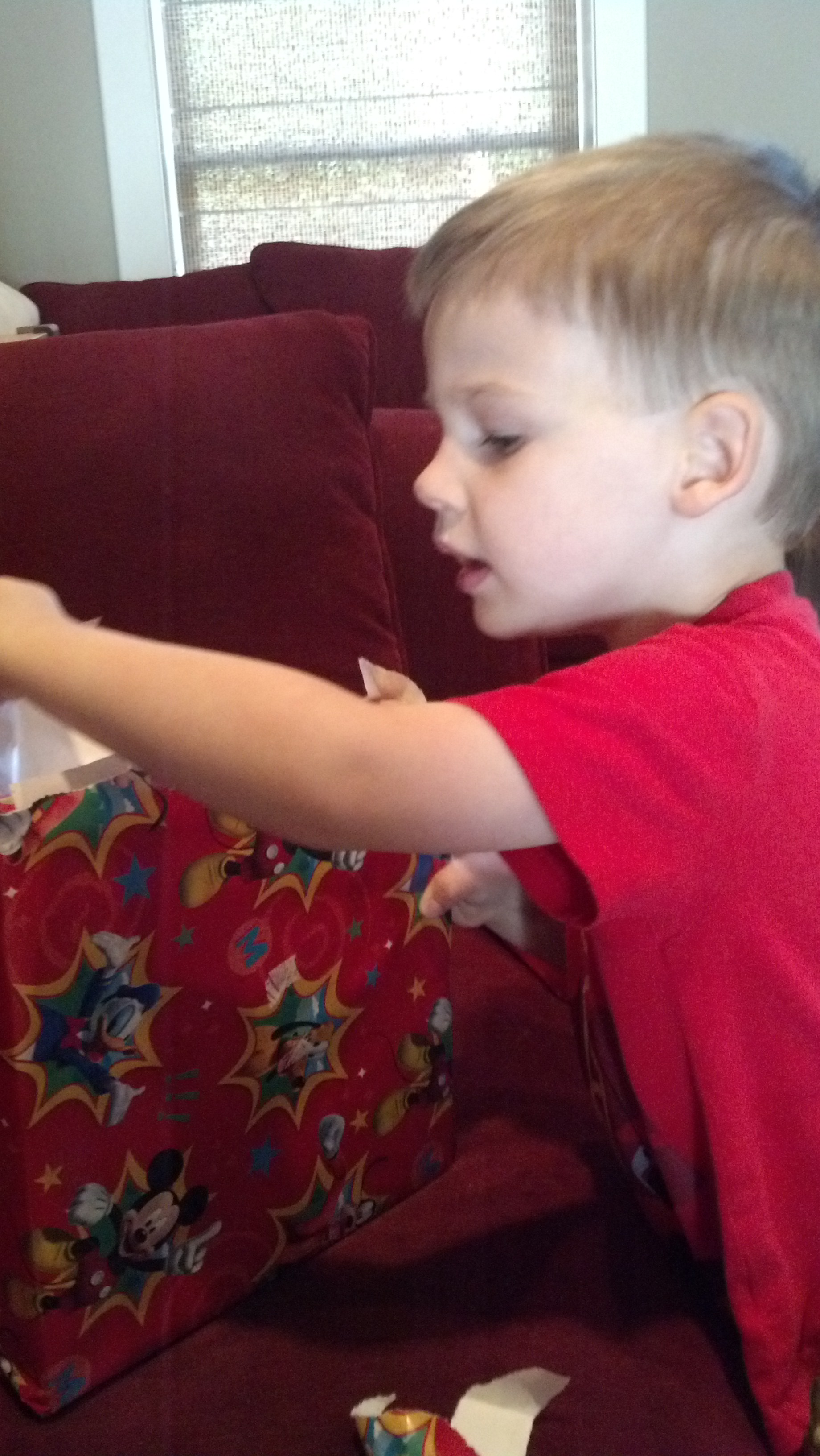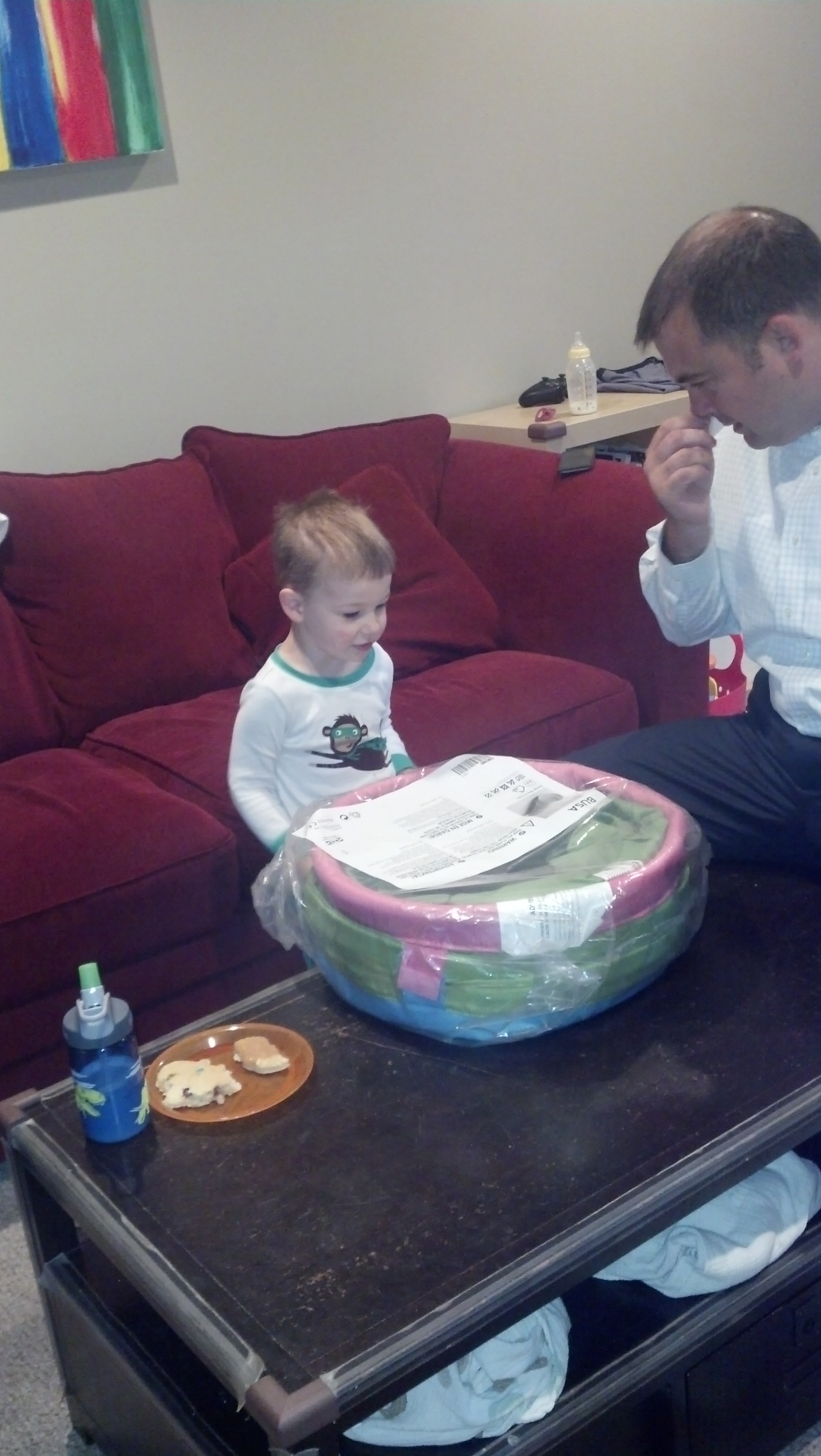 I swear we are going to throw this kid a proper birthday one of these years!! But this year it was another intimate event with the family. Wil is definitely starting to ‘get’ birthdays though and he knew his birthday was approaching. We talked a lot about special present ‘surprises’ and cookies and balloons – all his favorite things! So the morning of his birthday Phil and I both made a special effort to start the day off with a present and chocolate chip pancakes! It was basically the best morning ever in his mind.