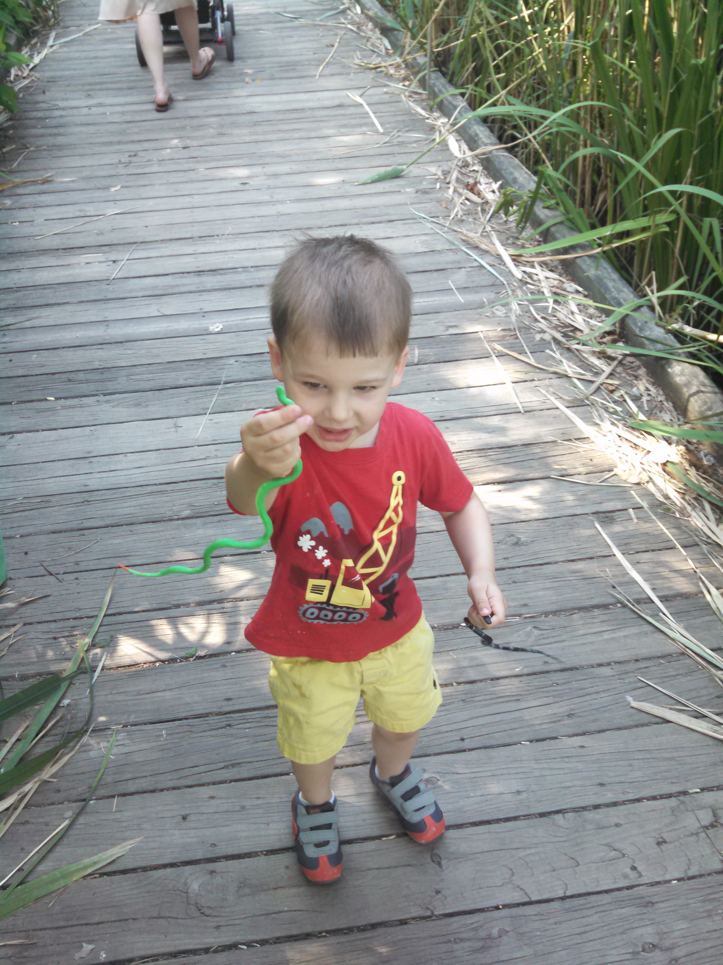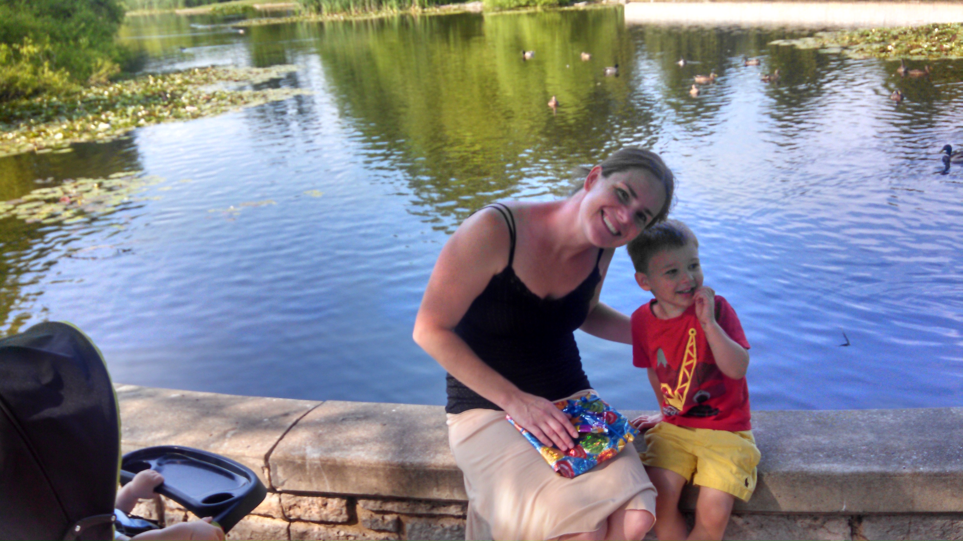 We all headed out on a walk around the duck pond where he opened another present.