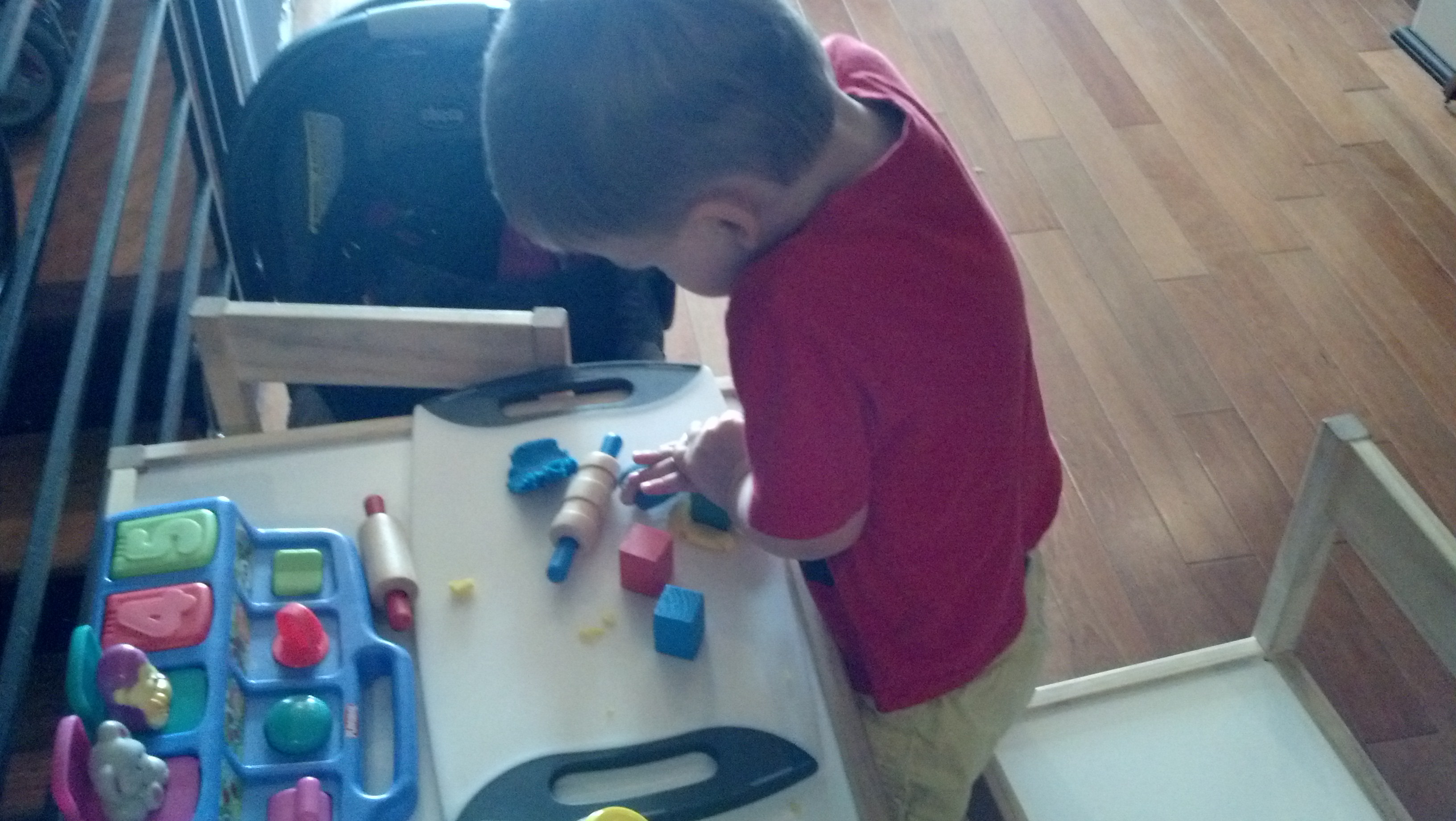 He is starting to climb ladders at the park and hang on the monkey bars but we are still working on his balance bike that he got for his birthday. Recently he has been really exciting about counting, especially with his fingers. He knows how to get to 5 – but doesnt quite grasp moving to 6 with the other hand. We also like making shapes and smiley faces. If youve gotten a card from us recently, it most likely has a Wil smiley face! He loves to build things – Hes getting better at building complete train tracks, and he loves building lego things. And hes really into puzzles!! He can put together entire (12 – 24 piece) melissa & doug puzzles! Im totally impressed. Phil and I have also reached the ‘spelling’ phase of our lives. Especially words like ‘C-r-a-c-k-e-r-s’ and ‘B-u-b-b-l-e-s’. If Wil hears certain words he loses his shit until he gets them, so its just easier to spell things.