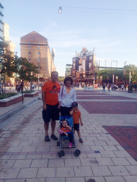 Here we are at the Os game – we stretched the kids nap times and actually went to a night game! We made it until about the 7th inning before heading home: