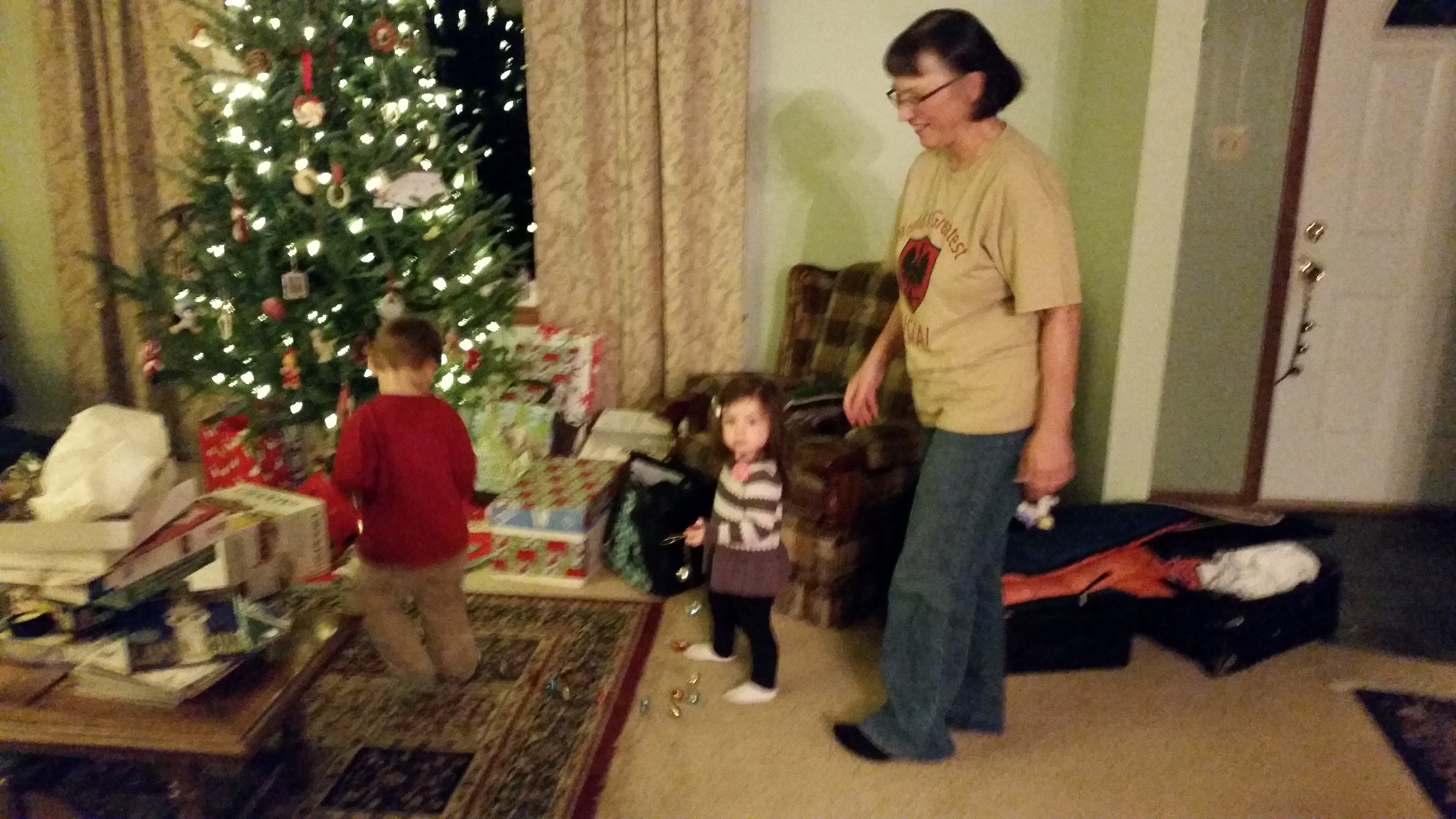 We got back to Indiana on Christmas Eve. Even though Phil and I were exhausted, Wil couldnt be more excited for Santa to visit. Wil was very specific on what he wanted from Santa: a red car and a blue car. Occasionally he would also ask for a spaceship. I thought all those things seemed easy enough, but when Phil and I went to target before we left, we couldnt find things that would perfectly fit the bill. Therefore we ordered things off of amazon and Busia and Dziadzia bailed us out and wrapped up everything in time for Christmas. Everything was perfect. Wil and Evie woke up Christmas morning at the Wozniaks and opened stockings downstairs. Wil got his red car and his blue car. Evie loved opening everything, including her new pink hippo pull-toy. And Dziadzia got his cocoa puffs. Everything was right in the world.
