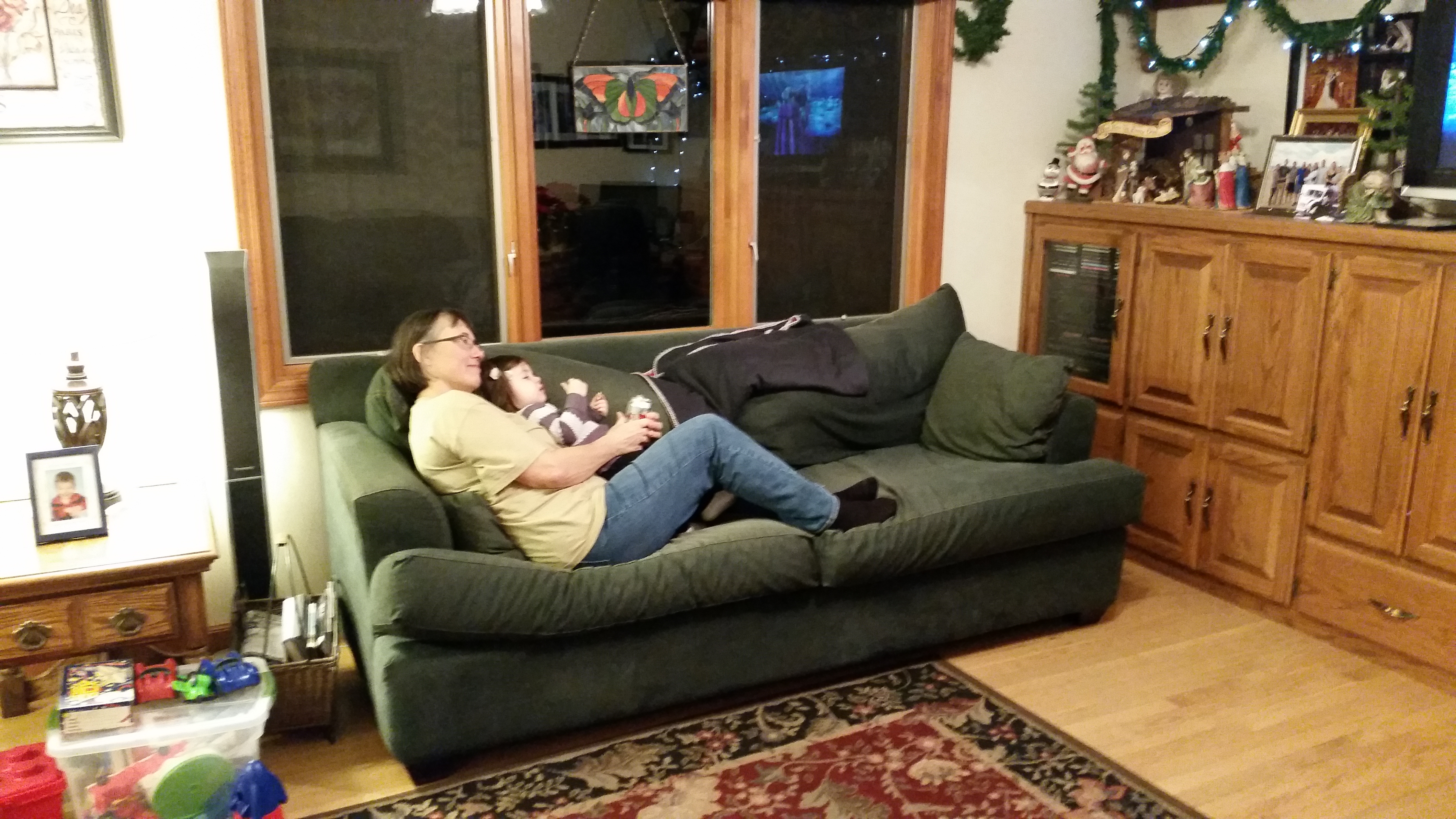 Its always a long trip to Bloomington but once we are there, its so great. There are a million people to help watch the kids, Wil and Evie are always smiling and happy, I can always get some extra work done, and Phil and I take time for ourselves and see friends. Christmas was extra special this year seeing our entire immediate family — It probably wont happen again for a very long time — But in the meantime, the kids always love to skype! We miss you all – Thanks for an amazing Christmas!