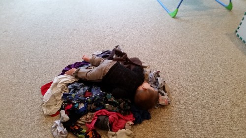 This kid loves fresh laundry