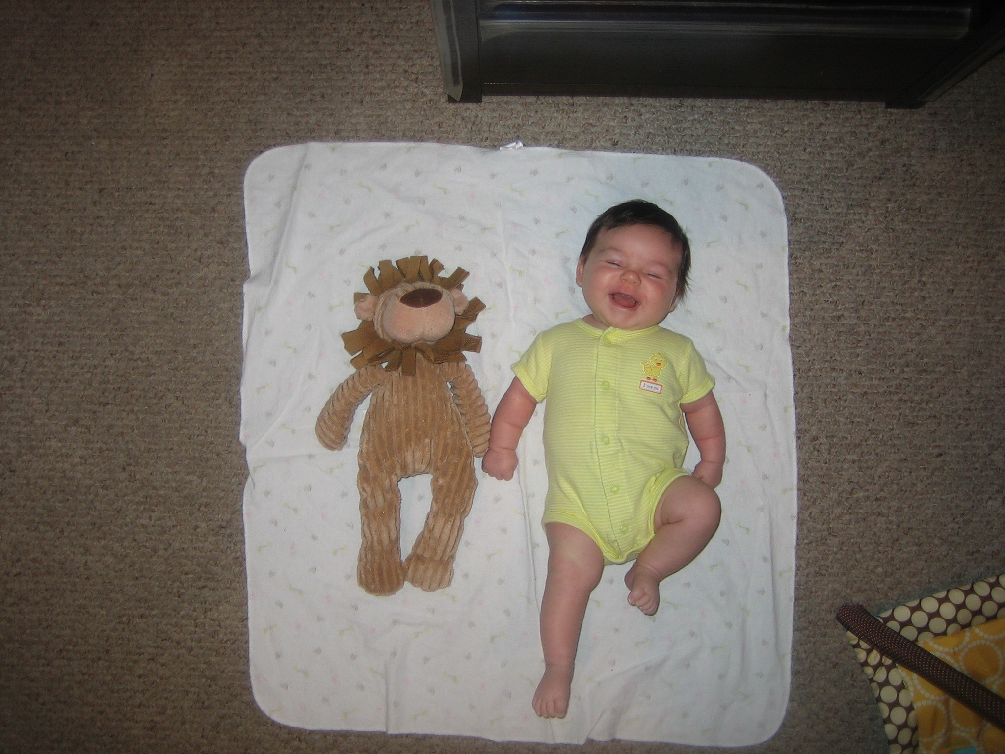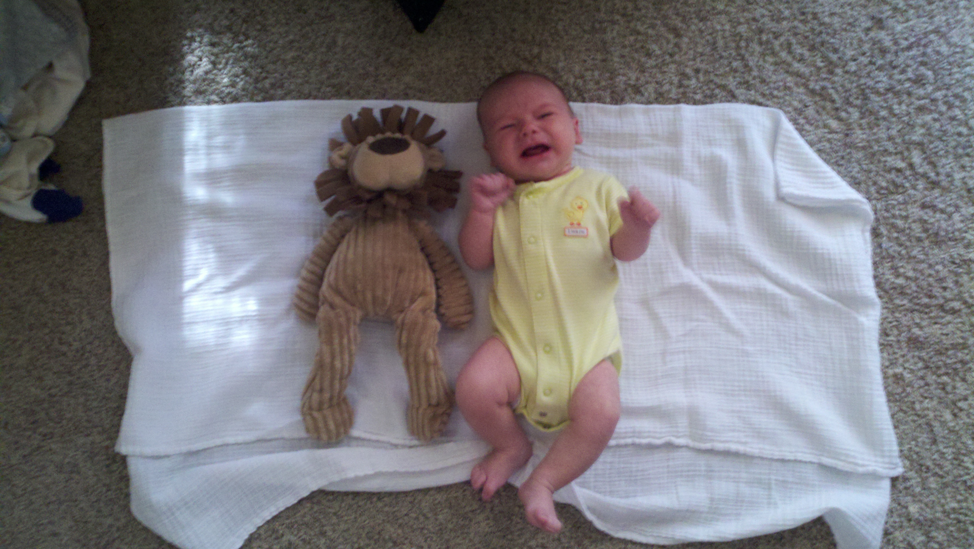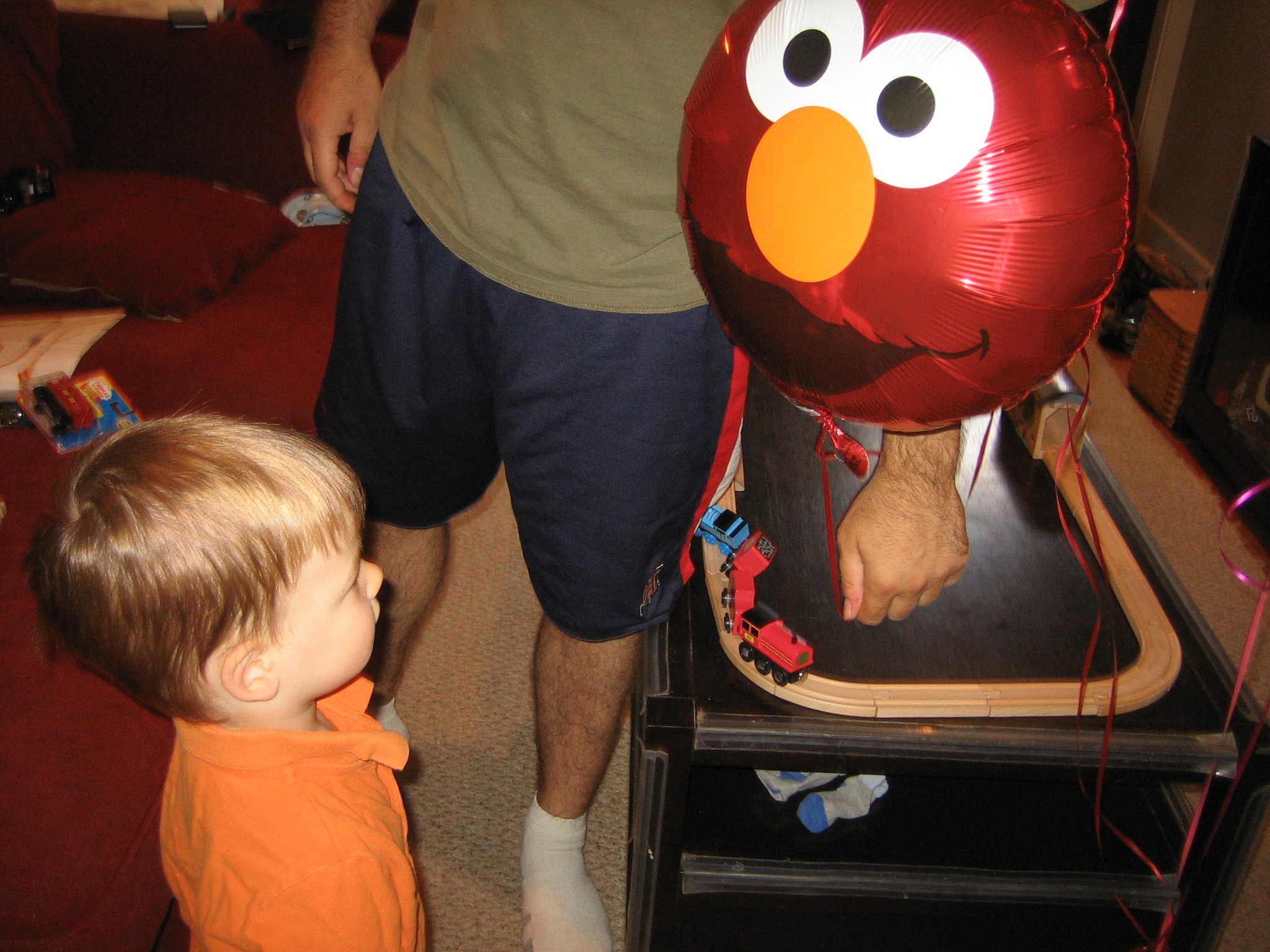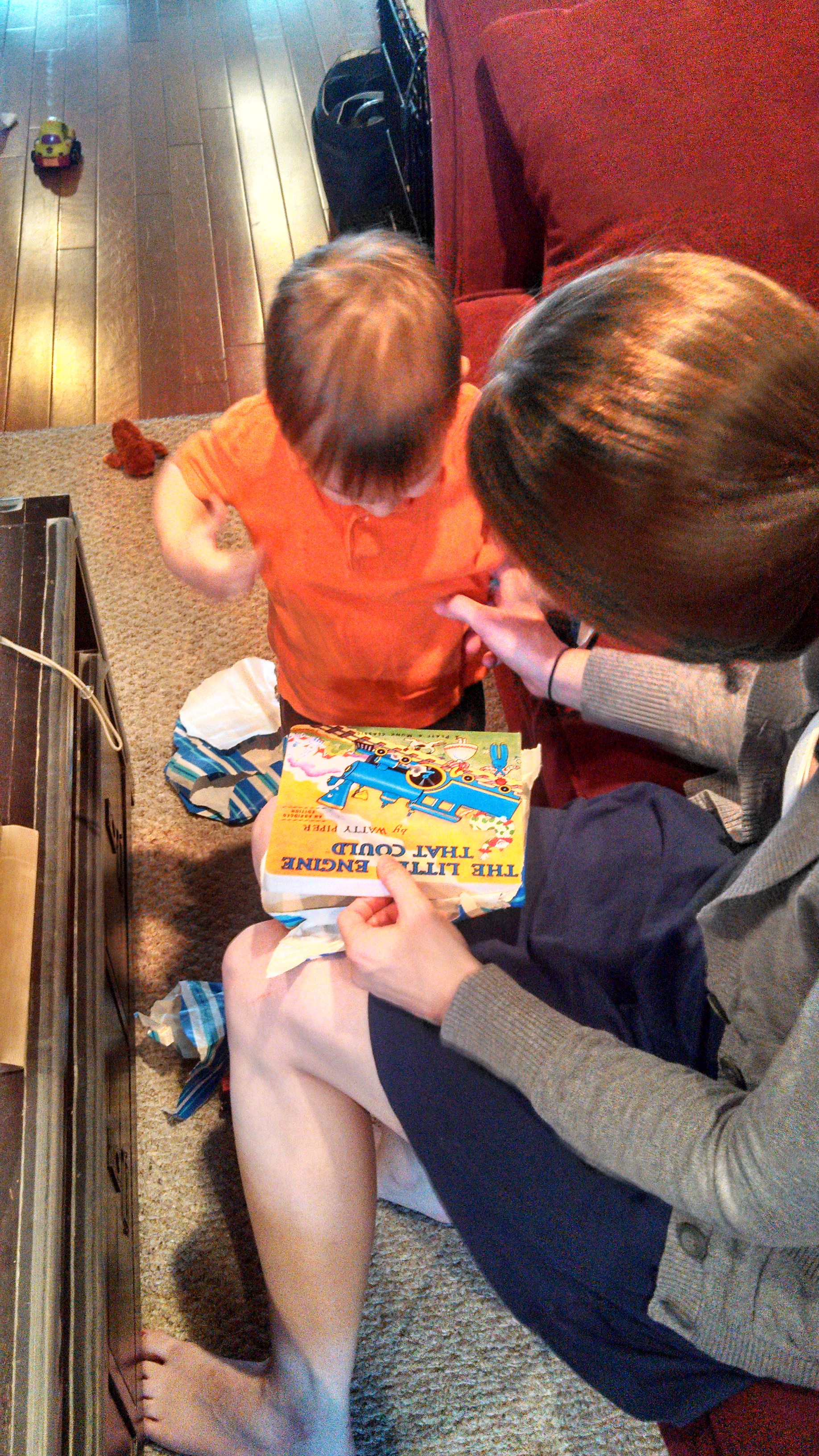 One thing that I think has really helped, is his vocabulary. I think he really enjoys words and talking. By far the funniest word in his vocabulary is ‘Mommy’ – which coming from him sounds like ‘Amy’. He drops the first ‘M’ so its more of an ‘ommy’ which sounds enough like ‘Amy’ that everyone laughs when he starts yelling it and running at me. We joke that we have a very formal relationship. ‘Daddy’, on the other hand, comes out clear as a bell. Weve been working on colors and counting, but those are taking some work. Currently when you ask what color something is, his only response is ‘yellow’. EVERYTHING is yellow. Until you correct him and then he’ll repeated after you. But initially, its yellow. He also loves to growl. This started as we were learning animal sounds, but now he likes to growl and grunt randomly as hes playing and walking around. He sounds possessed half of the time. Good thing its 2013, or someone would have given this kid an exorcism already. He also growls when he shows you his muscles. When I go to change his clothes, or if he sees someone else without a shirt on, he growls and ‘flexes’ his muscles. Its so adorable. I hope we have a video of it. Hes starting to put a few words together in strings. Usually ‘more’ followed by whatever he wants. He also enjoys singing. Usually just ‘LA LA LA’ – but he has taken to singing the new kids on the block with daddy at nighttime. Phil starts singing ‘Oh oh oh oh oh – the right stuff’ and he will start singing along.