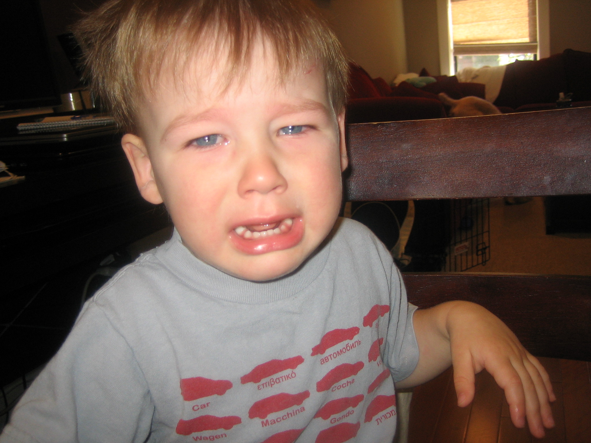 2:00 – UPS rings the doorbell. CHAOS ensues. Barney goes nuts, starts barking and running around, and wakes up Evie who starts crying. I get Barney in his cage, grab the package, scoop up Evie all in record time – and Wil stays asleep! I change and feed Evie and put her upstairs to finish napping before getting Wilek’s afternoon snack ready.