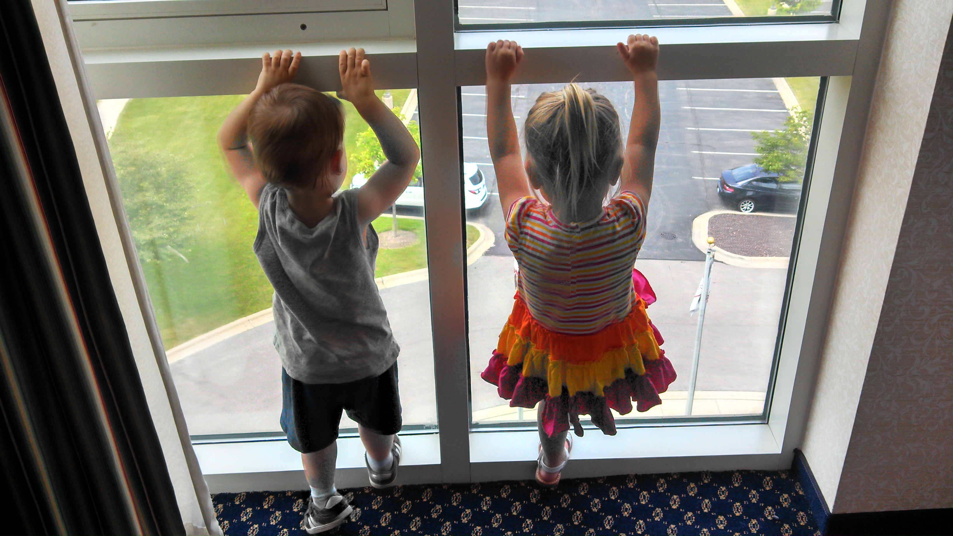 11:30 – Evie wakes up hungry. I have to get her out of the car-seat and give her a bottle. Wil is okay with this for 5 minutes and keeps himself entertained by taking my shoes on and off, but then gets bored and starts to explore the room. I can watch him, but not reach him. Hes fine for a bit – then finds an upright flag pole in the corner. Before I could put Evie down and get to Wil – he, of course, topples the thing over. I’m able to alert a mother who half-catches the pole before it hits her and her 3-year-old son. It hits the little boy on the back and he starts crying. I’m mortified and apologize profusely. Within 5 minutes of the incidence I am OUTTA there! Not before checking on the little boy one more time, he seems ok, but I’m still shaking. Might not show my face there for a few weeks. Car ride home is miserable. Evie is screaming due to not finishing her bottle or being burped. Wil was not ready to leave yet. Ugh.